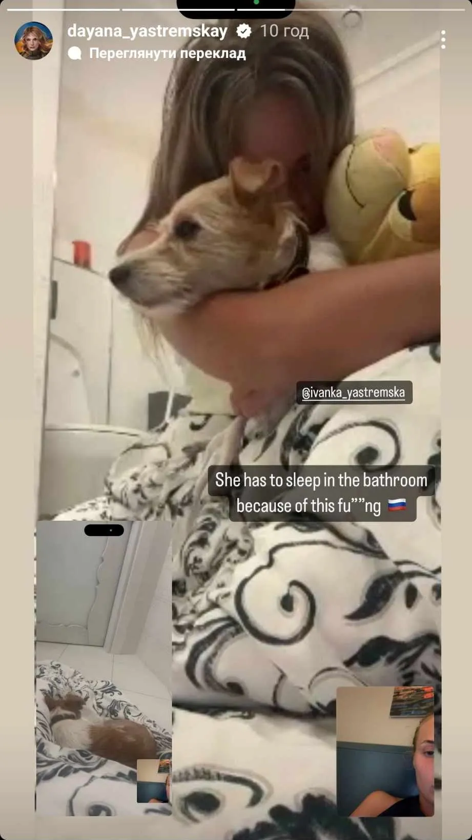 "Їй доводиться спати у ванній через цю йо**ну Росію", – написала Даяна Ястремська.