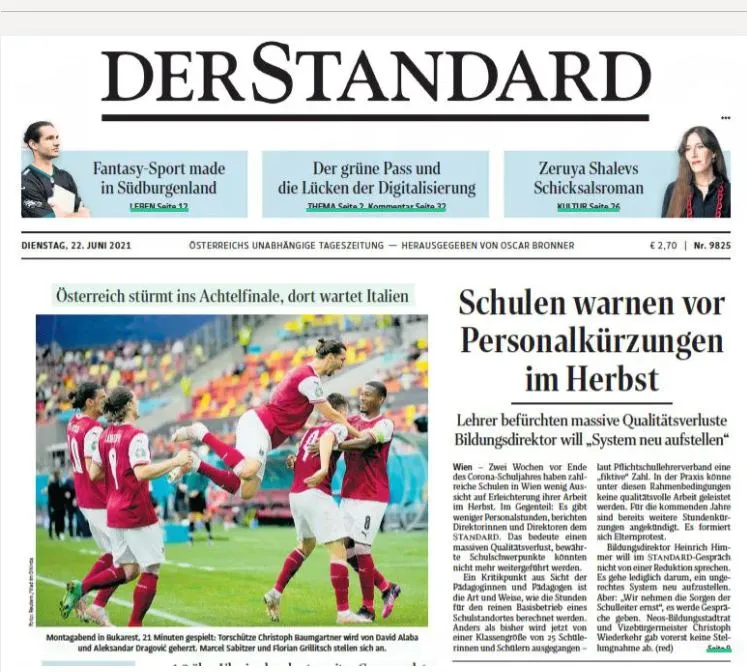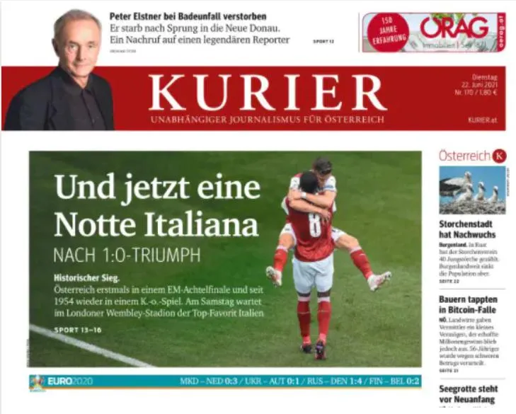 - "Австрія проривається в 1/8 фіналу, де її чекає Італія", – пише Der Standard.