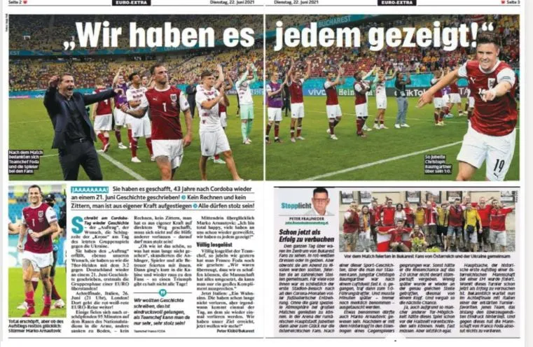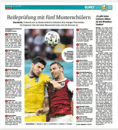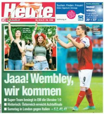 - "Таааак! "Вемблі", ми їдемо", – з таким заголовком вийшла газета Heute. Натомість більш промовистий заголовок Kronen Zeitung.
