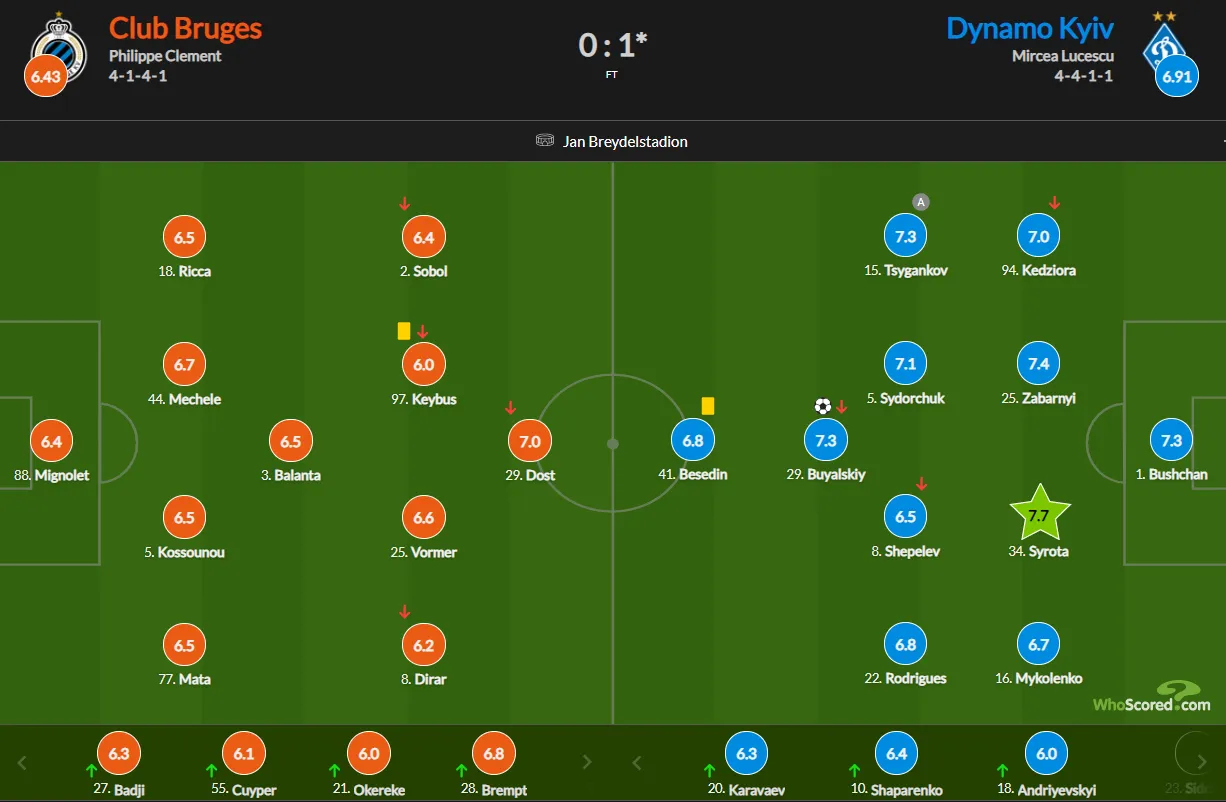 Оценки игроков матча Брюгге-Динамо / Фото: скриншот