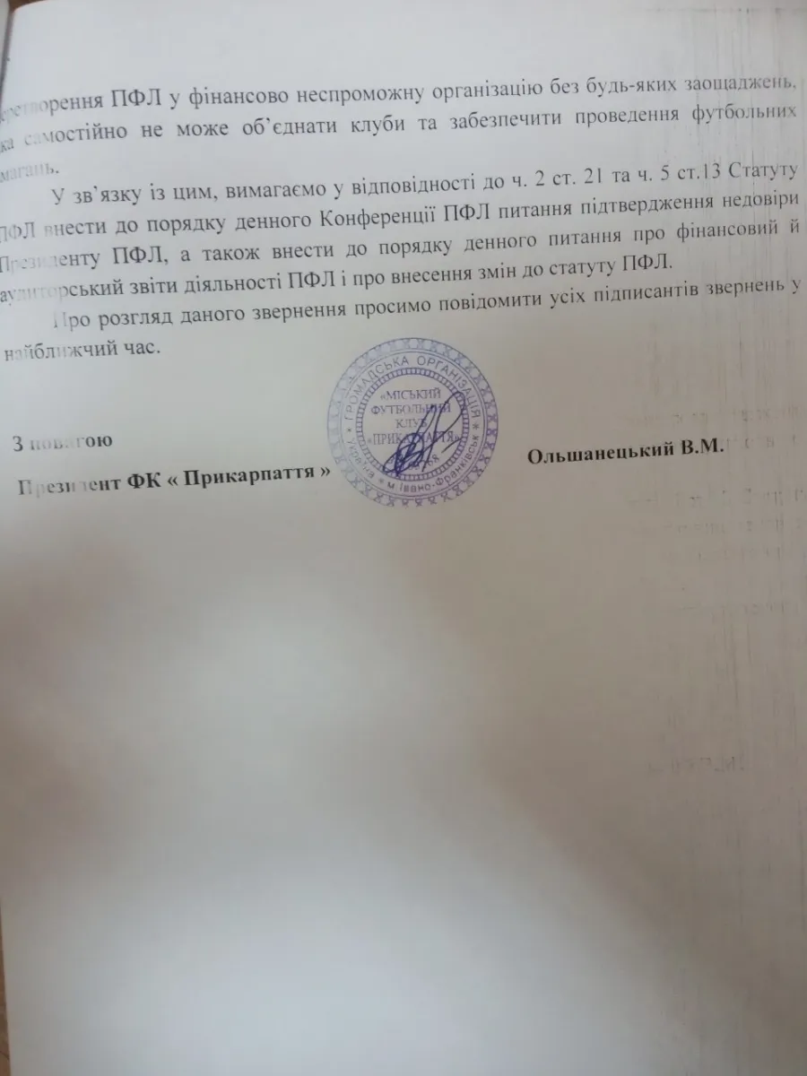 Обращение 24 клубов / Фото fc.if.ua