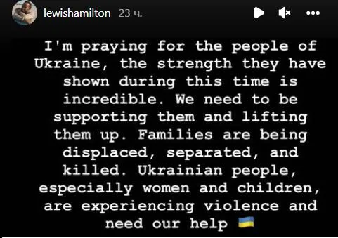 Титулованный гонщик призывает мир помочь Украине / Фото с инстаграма Хэмилтона