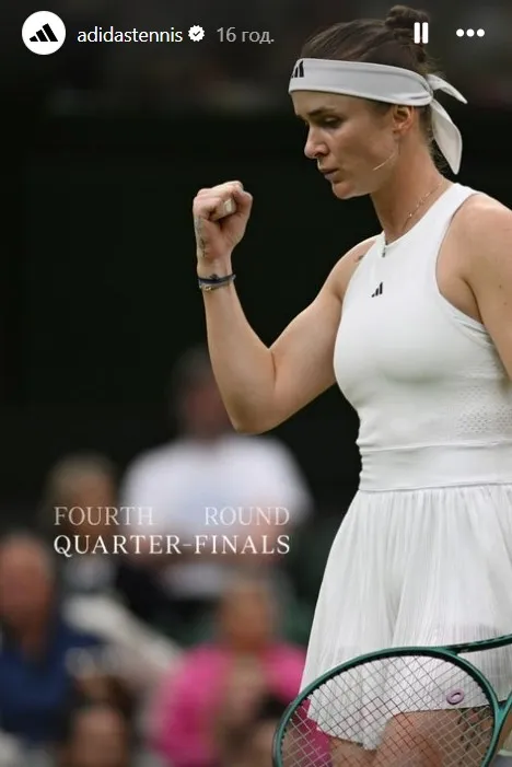 Adidas и компания Waterdrop, которые являются спонсорами Элины, поздравили ее с выходом в четвертьфинал Уимблдона на своих страницах в инстаграм. Правда, обе компании использовали старые фото украинки без черной ленты.