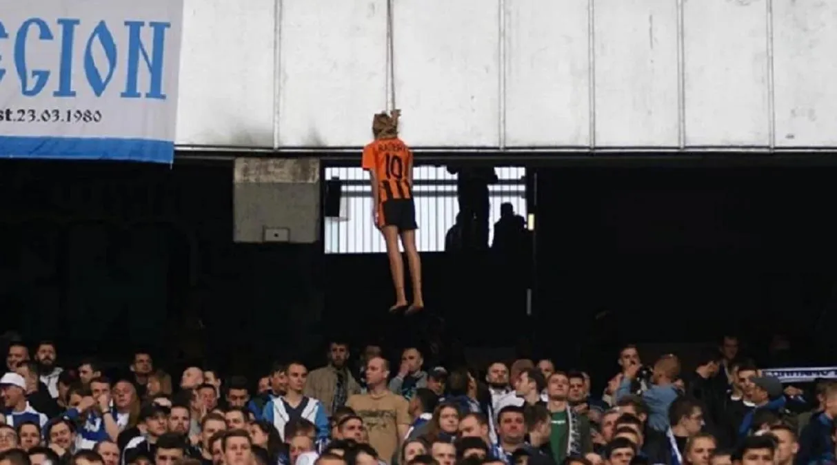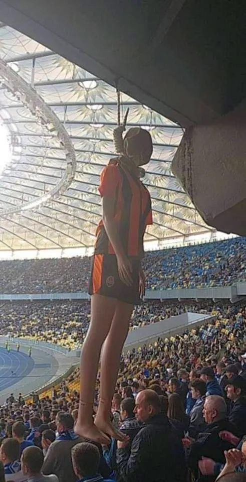 Болельщики сделали чучело форварда "горняков" и повесили его на трибунах НСК "Олимпийский". Выглядело это довольно жутко.