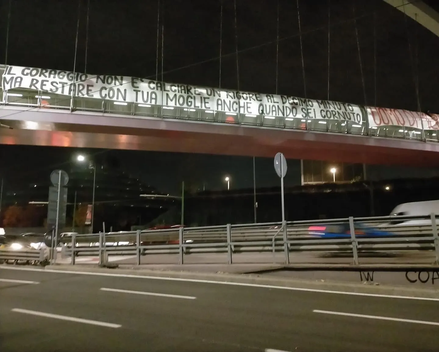 После матча ультрас "россонери" повесил огромный баннер о дерзком турецком игроке.