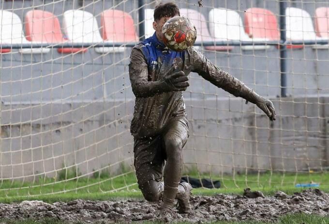 Главный арбитр встречи дал "добро" на проведение поединка после сильного ливня, а украинский голкипер принял "грязевые ванны" на предматчевой разминке. На форме Фесюка не было свободного места, где не было болота, которое заполонило все поле стадиона.