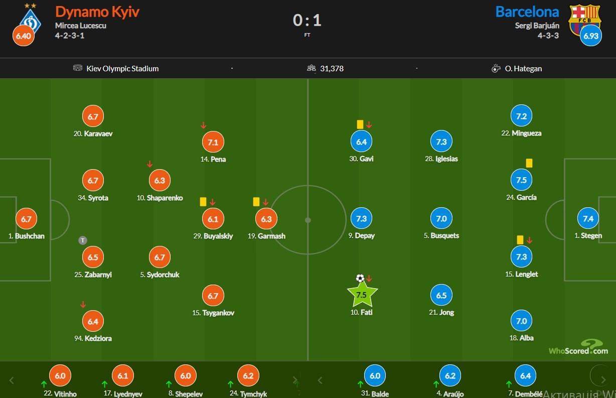 Динамо – Барселона: оценки игроков / Скриншот из WhoScored