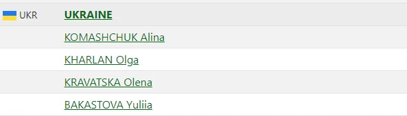 Харлан в заявке сборной Украины / скриншот fencingworldwide.com