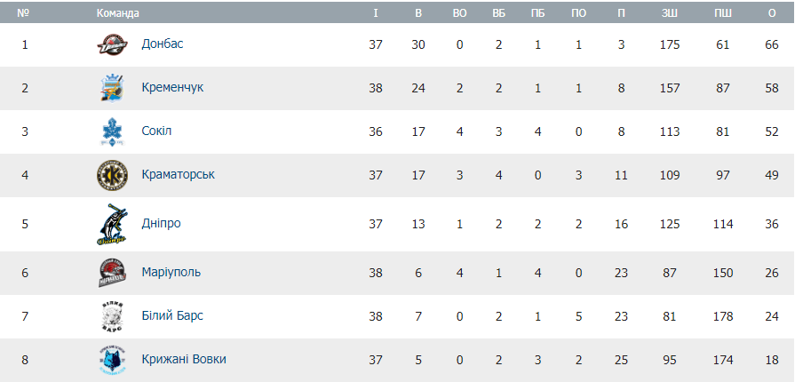 Турнирная таблица УХЛ