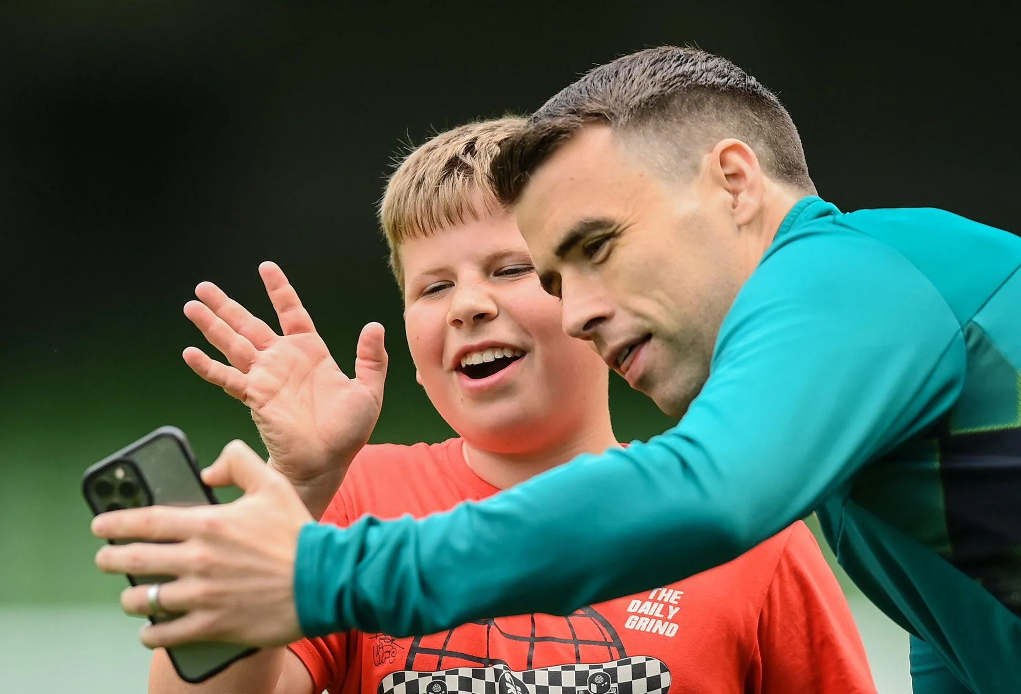 Илья и Матвей внимательно наблюдали тренировку. Капитан сборной Ирландии Шеймус Коулмэн в качестве особого подарка позвонил по видеосвязи Виталию Мыколенко. Футболисты вместе выступают за Эвертон.