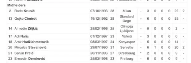 Боснийский журналист Харис Мрконья сообщил, что полузащитник Бешикташа даже не вошел в заявку на матч с Украиной. Ранее он был раскритикован и освистан боснийскими болельщиками за слабый матч против Финляндии (поражение 1:3).
