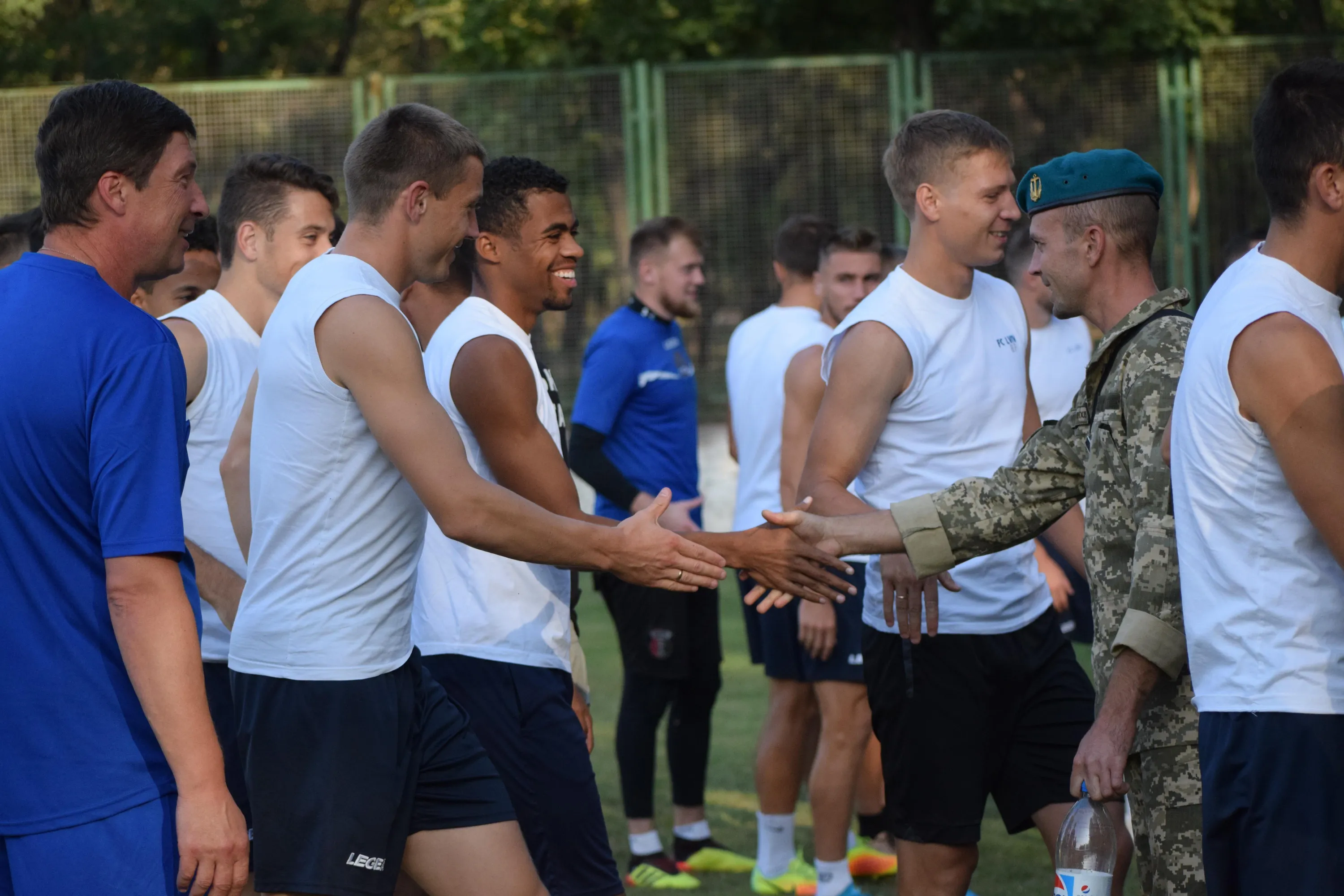 Футболисты ФК "Львов" во время встречи с морскими пехотинцами