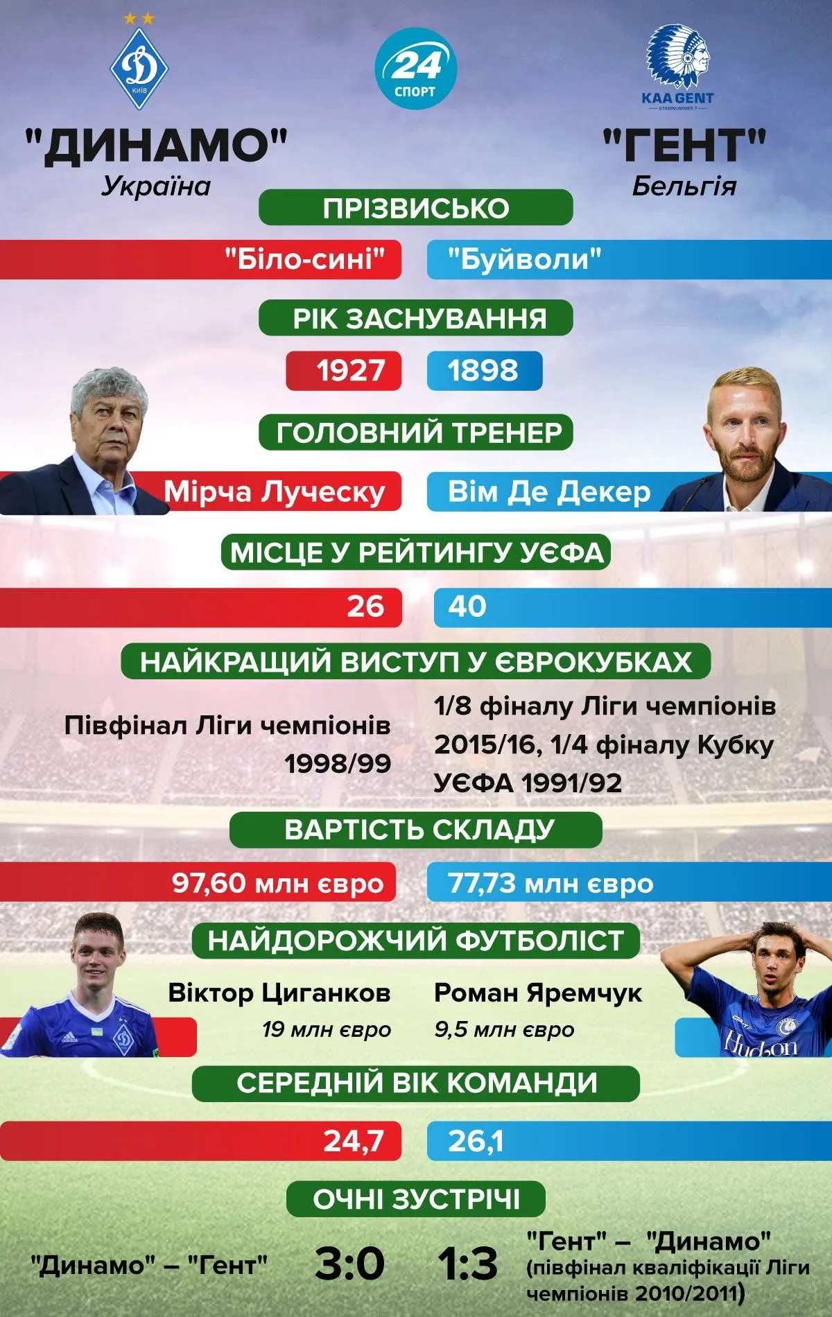 Инфографика матча Лиги чемпионов "Гент" - "Динамо" / 24 канал