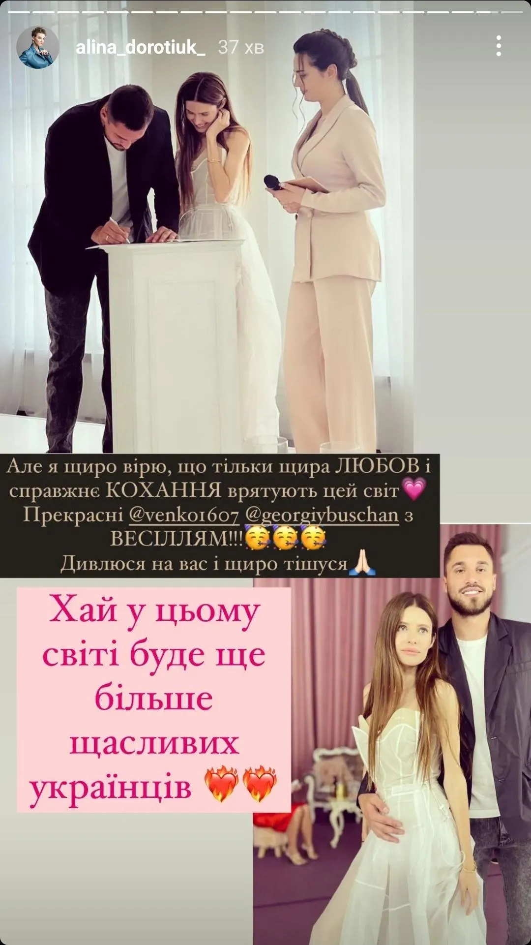 Бущан женился второй раз / Фото с инстаграмма alina_dorotiuk