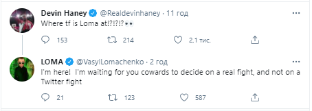 А Василий решил ответить и сделал это максимально жестко. "Я здесь! Жду, пока вы, трусы, решитесь на настоящий бой, а не на схватку в твиттере, – написал Ломаченко.