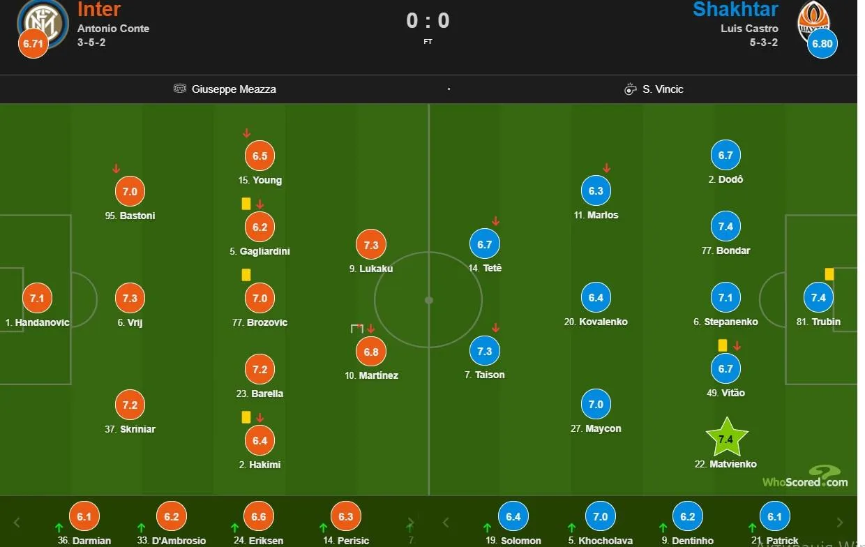 Интер – Шахтер: оценки игроков / Скриншот из WhoScored