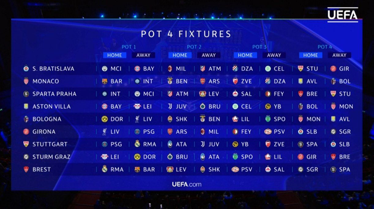 Однако это не последние нововведения. Каждая команда сыграет с восемью разными соперниками: четыре матча дома и четыре – на выезде. На этом этапе исключается встреча с командами из своей страны, а также более чем с двумя соперниками из одной ассоциации.