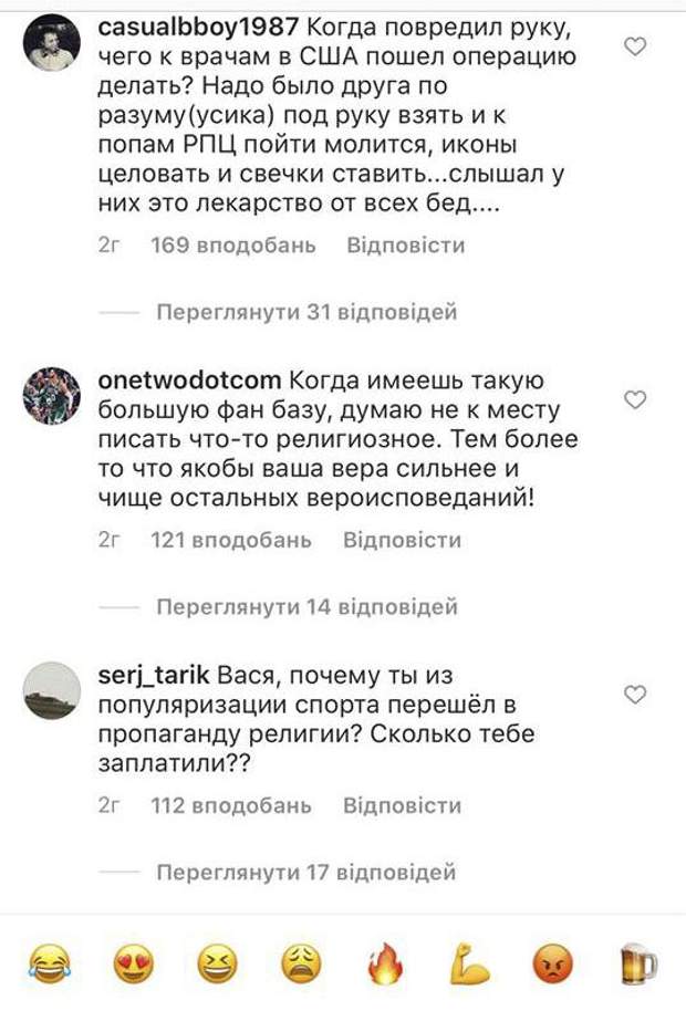 В ответ Ломаченко получил много негативных комментариев от подписчиков, которые напомнили боксеру об участии в российском религиозном фильме.