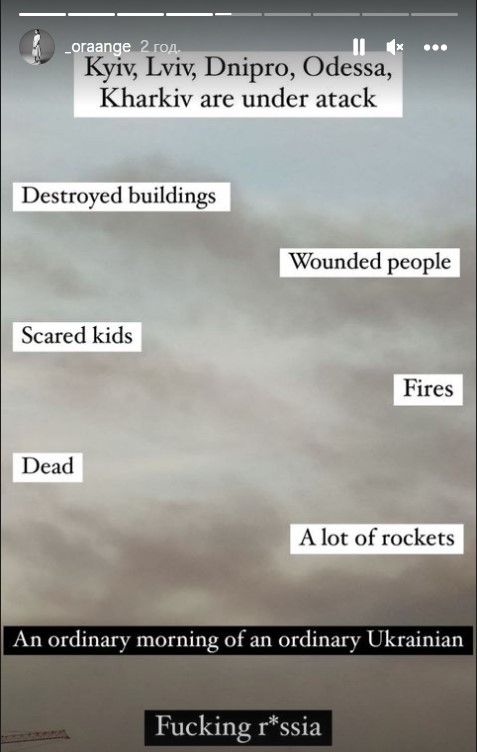 Сегодня проснулась от звуков взрывов, российские ракеты попали в роддом, торговый центр и жилые дома. Массированный ракетный удар по Украине: Днепр, Киев, Львов, Одесса, Харьков. Много убитых и раненых. Нет слов, чтобы описать, насколько сильно мы ненавидим россиян,