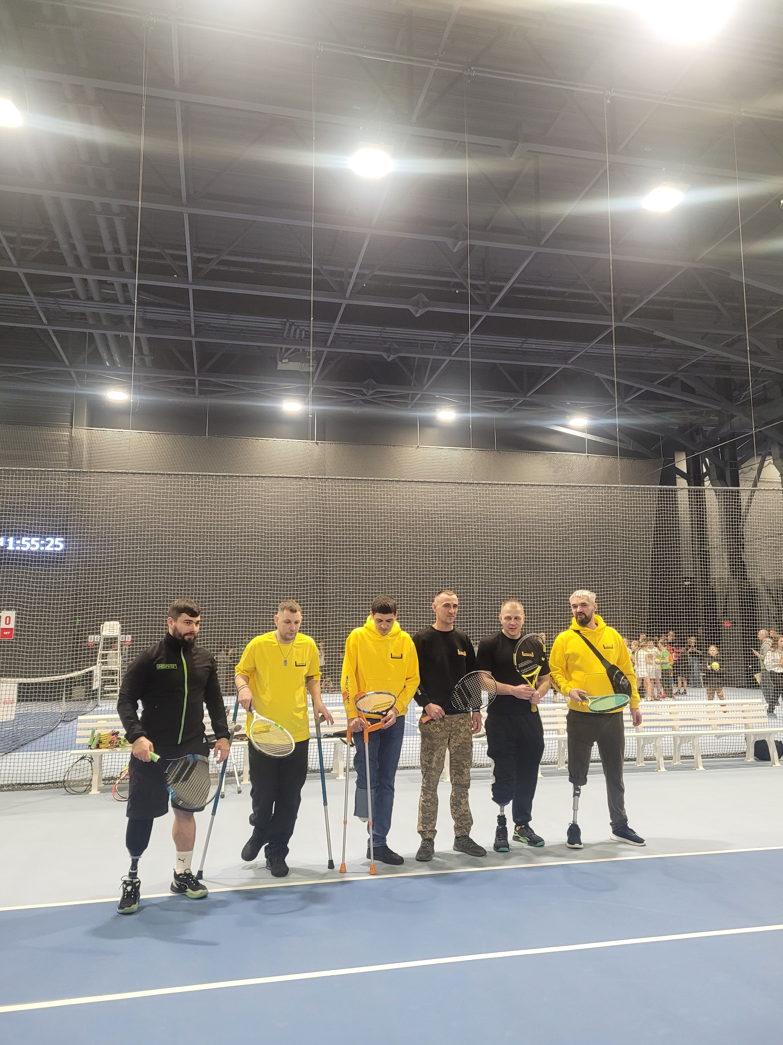 Мастер-класс был настолько насыщен событиями, что у Элины и Сергея просто не было времени выдохнуть. Не успели все счастливые дети уйти с корта, как на покрыве появились украинские военные, которые проходят реабилитацию в центре "Unbroken".