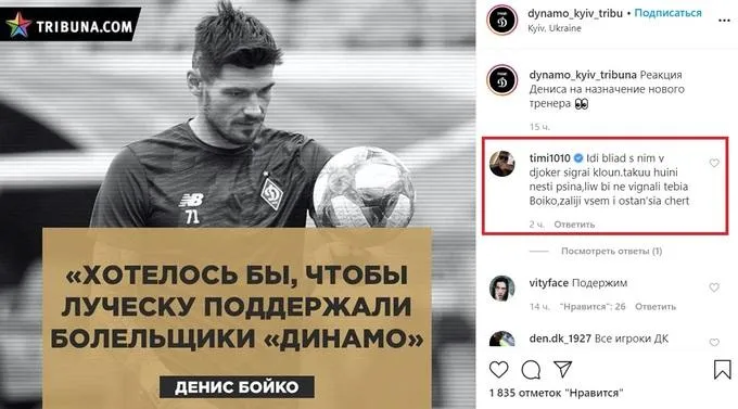Профиль dynamo_kyiv_tribuna в Instagram выложил фото с заявлением Бойко, что Луческу нужно поддержать.