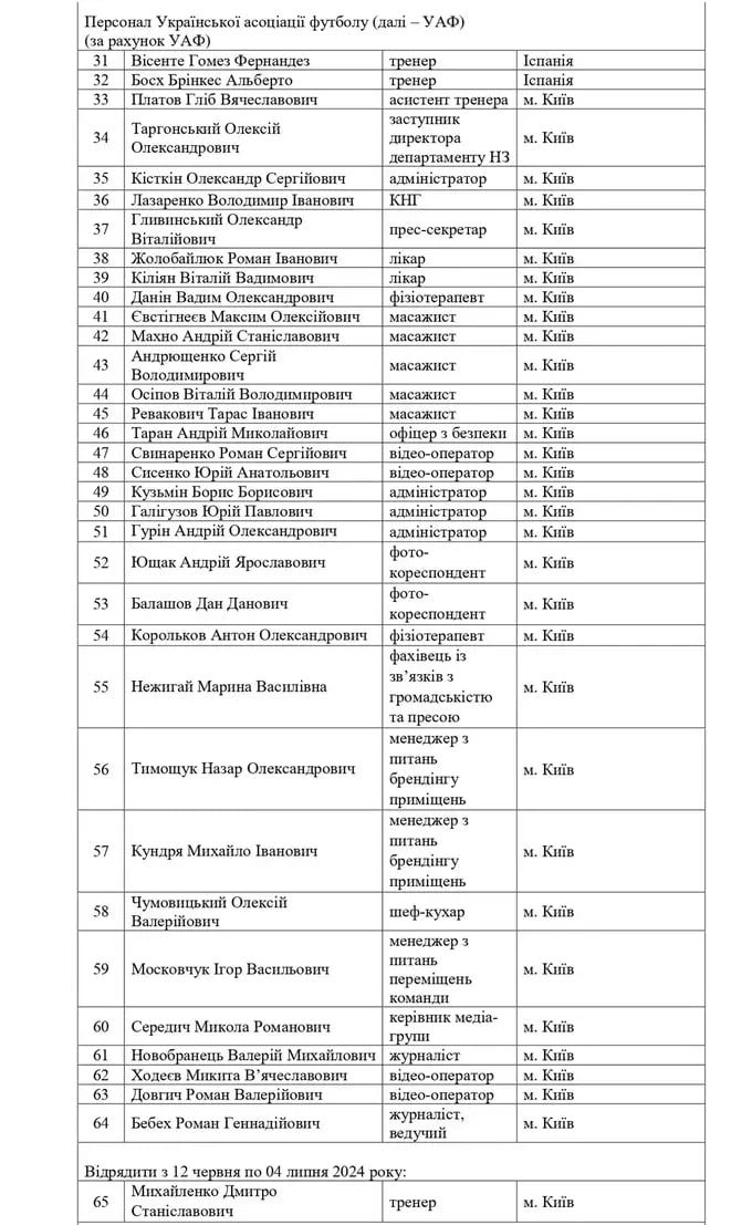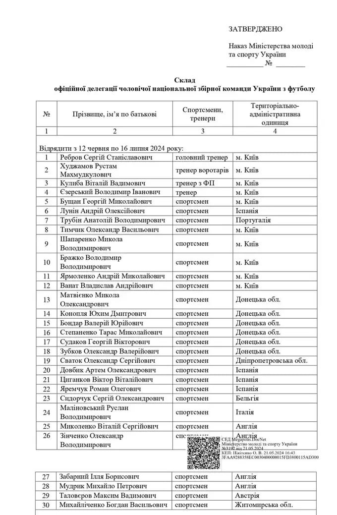 Состав делегации сборной Украины на Евро-2024: фото с сайта Министерства молодежи и спорта Украины