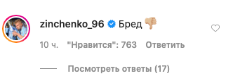 В ответ на это заявление Емелина Зинченко написал в Instagram: "Бред".