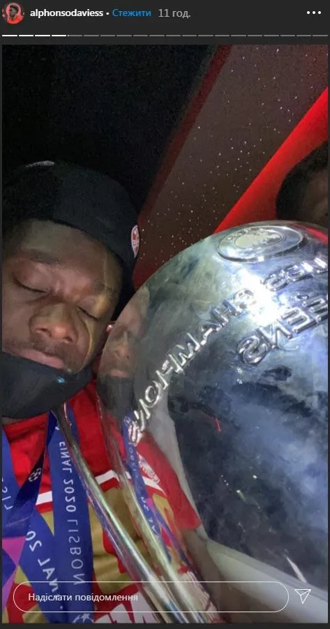 Крайний защитник Дэвис также не расставался с трофеем. Прямо в автобусе футболист решил немного заснуть, при этом в руках крепкого держа заветный кубок.