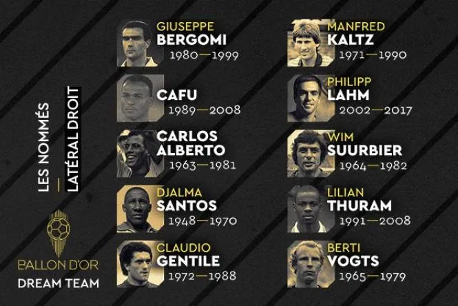 Правые защитники: Джузеппе Бергоми, Клаудио Джентиле, Манфред Кальц, Карлос Альберто, Кафу, Филипп Лам, Джалма Сантус, Вим Сюрбир, Лилиан Тюрам, Берти Фогтс.