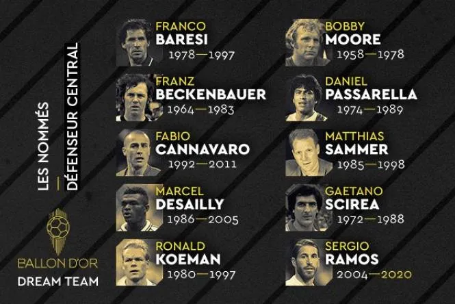 Центральные защитники: Франко Барези, Франц Беккенбауэр, Марсель Десаи, Матиас Заммер, Фабио Каннаваро, Рональд Куман, Бобби Мур, Даниель Пассарелла, Серхио Рамос, Гаэтано Ширеа.