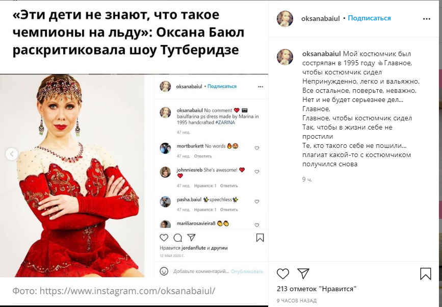 На Баюл полился водопад грязи и она выключила комментарии на свои странице.