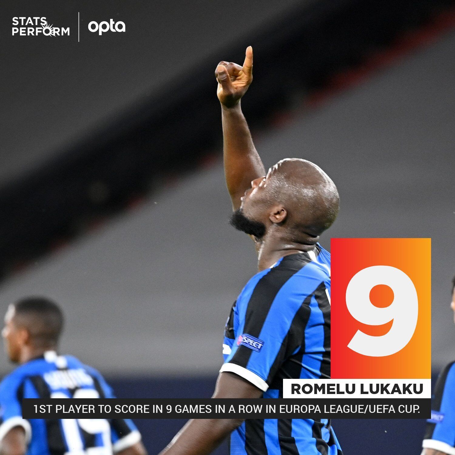 Лукаку забивает в 9 матчах турнира подряд. Четыре раза он забил за "Интер" и восемь мячей в пяти встречах за "Эвертон" (сезон 2014/15), установив таким образом рекорд, сообщает Gracenote Live.