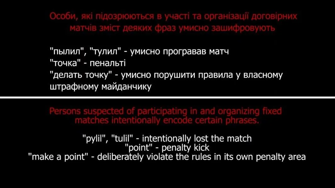 В последней части видео от Нацполиции говорится о том, как "Суммы" делали нужный результат в матче с "Десной" (0:2, апрель 2018), которая сейчас выступает в украинской Премьер-лиге.