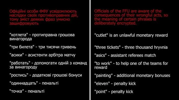 Расследование показало некоторые анекдотические моменты. Например, один арбитр ФФУ в разговоре с женой сетовал, что команды сыграли вничью, поэтому он не получит той суммы средств, за которую мог бы закончить ремонт. Жена арбитра посоветовала ему по приезду домой пойти в церковь, ведь его могли "сглазить", поэтому он не может получить взятку за судейство.