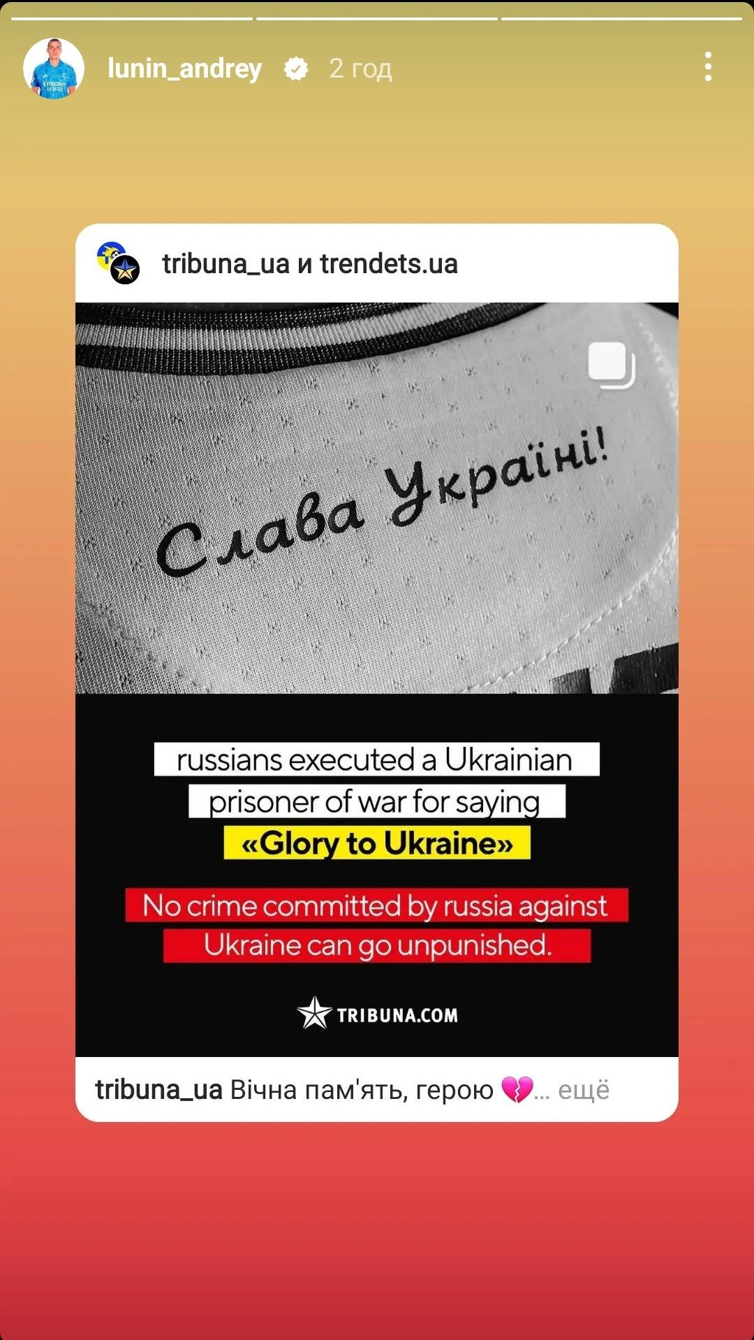 Многие спортсмены сообщения распространили на английском языке, указывая, что последними словами военного были именно "Слава Украине!".