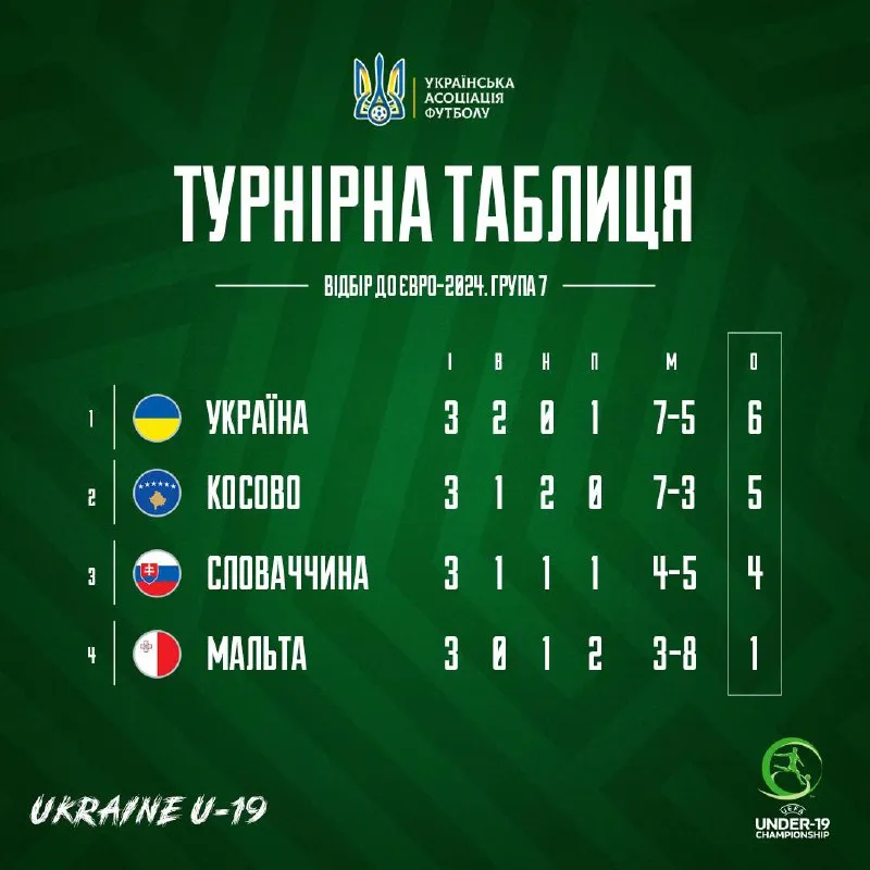 Первый этап отбора на юношеский чемпионат Европы Украина начала с победы над Мальтой (3:1), после чего сенсационно разгромно уступила сборной Косово (0:4) и опустилась на третье место в группе. Для дальнейшего участия в отборе на юношеское Евро-2024 "сине-желтым" нужна была победа над Словакией, которая занимала вторую позицию, пишет 24 Канал.