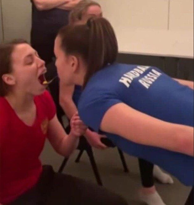 Девушки, разделившись на две команды, переодевали майки на скорость, кормили друг друга, перенося ложки во рту. Датские эксперты, норвежский журналист и гандболистка раскритиковали "глупость и идиотизм" спортсменок из РФ и потребовали их дисквалифицировать.