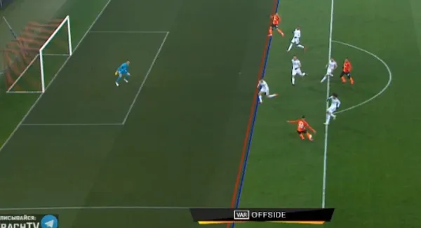 Однако радость дончан была преждевременной. Видео-ассистент подсказал главному арбитру матча Бобби Мэддену, что был офсайд, поэтому взятие ворот было отменено. Всего на 27 сантиметров впереди оказался футболист сборной Украины.