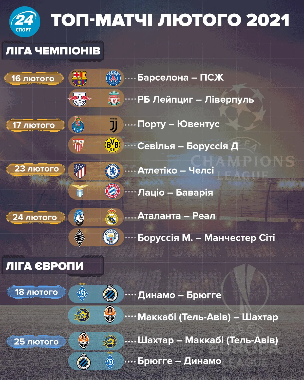 - Динамо встретится с бельгийским Брюгге. Киевляне примут бельгийцев на НСК "Олимпийский" уже 18 февраля.