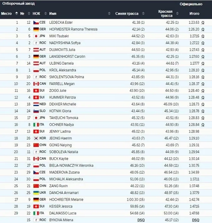 "Мне за 5 минут до выхода сказали, что я допущена. Я собралась как могла. Проехала я слабо, когда увидела время – ужаснулась. Но во второй попытке думаю гораздо лучше. Надеюсь, что кто-то упадет и я пройду к 16-ти, а там уже", – сказала сноубордистка в интервью "Суспільне Спорт".