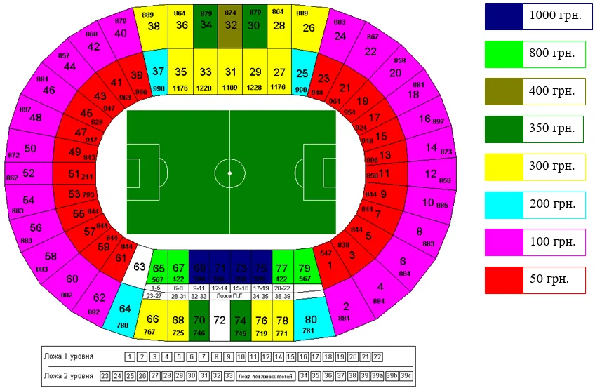 Продажа билетов будет осуществляться в следующих ценовых категориях: 50, 100, 200, 300, 350, 400, 800 и 1000 гривен.