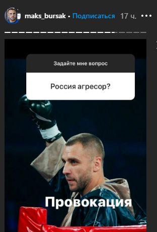 А на вопрос о том, является ли Россия агрессором, боксер отвечать не стал, написав: "Провокация".