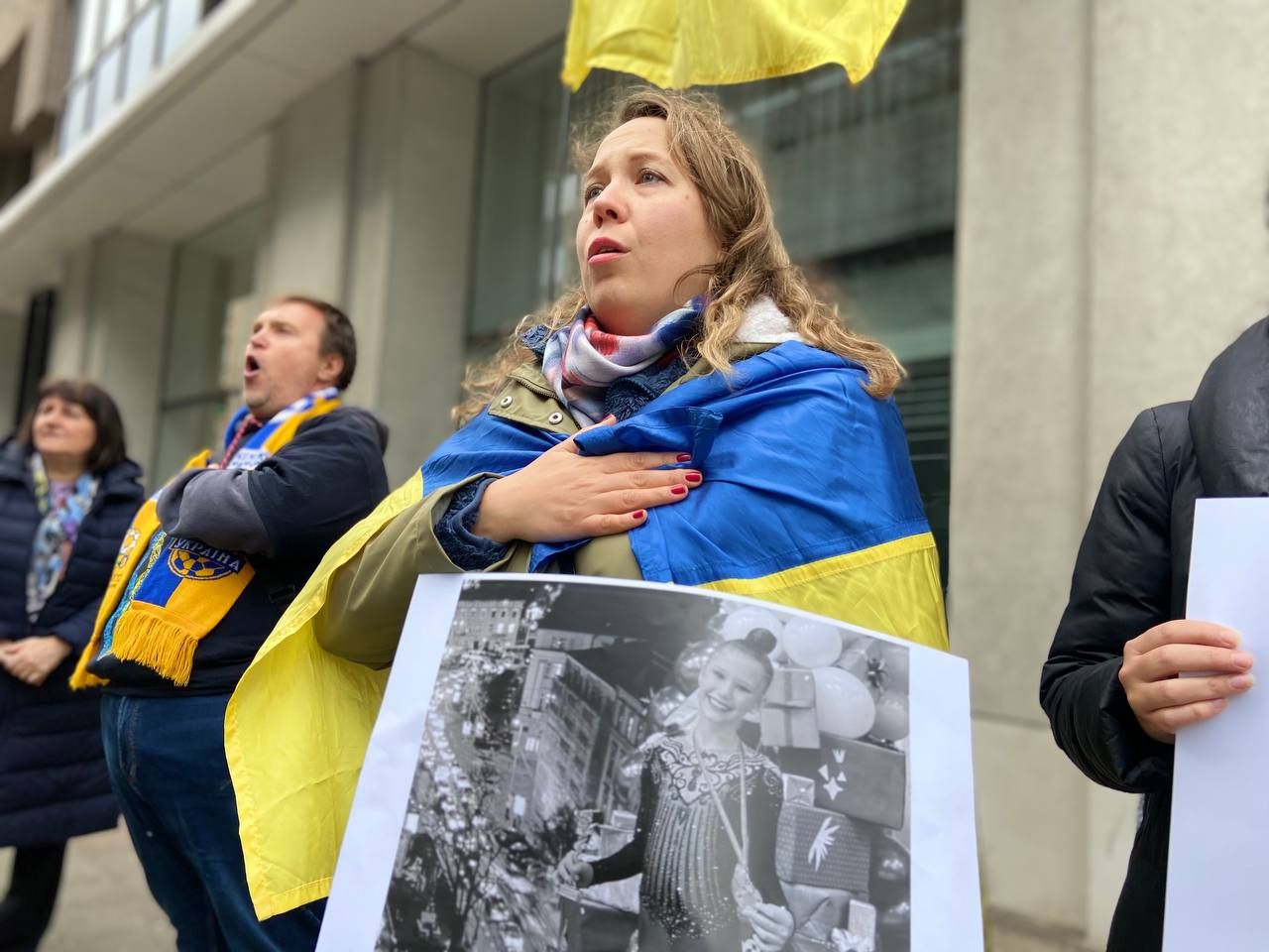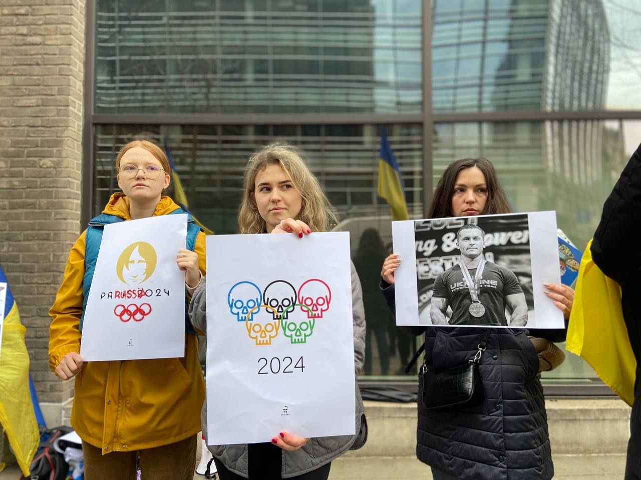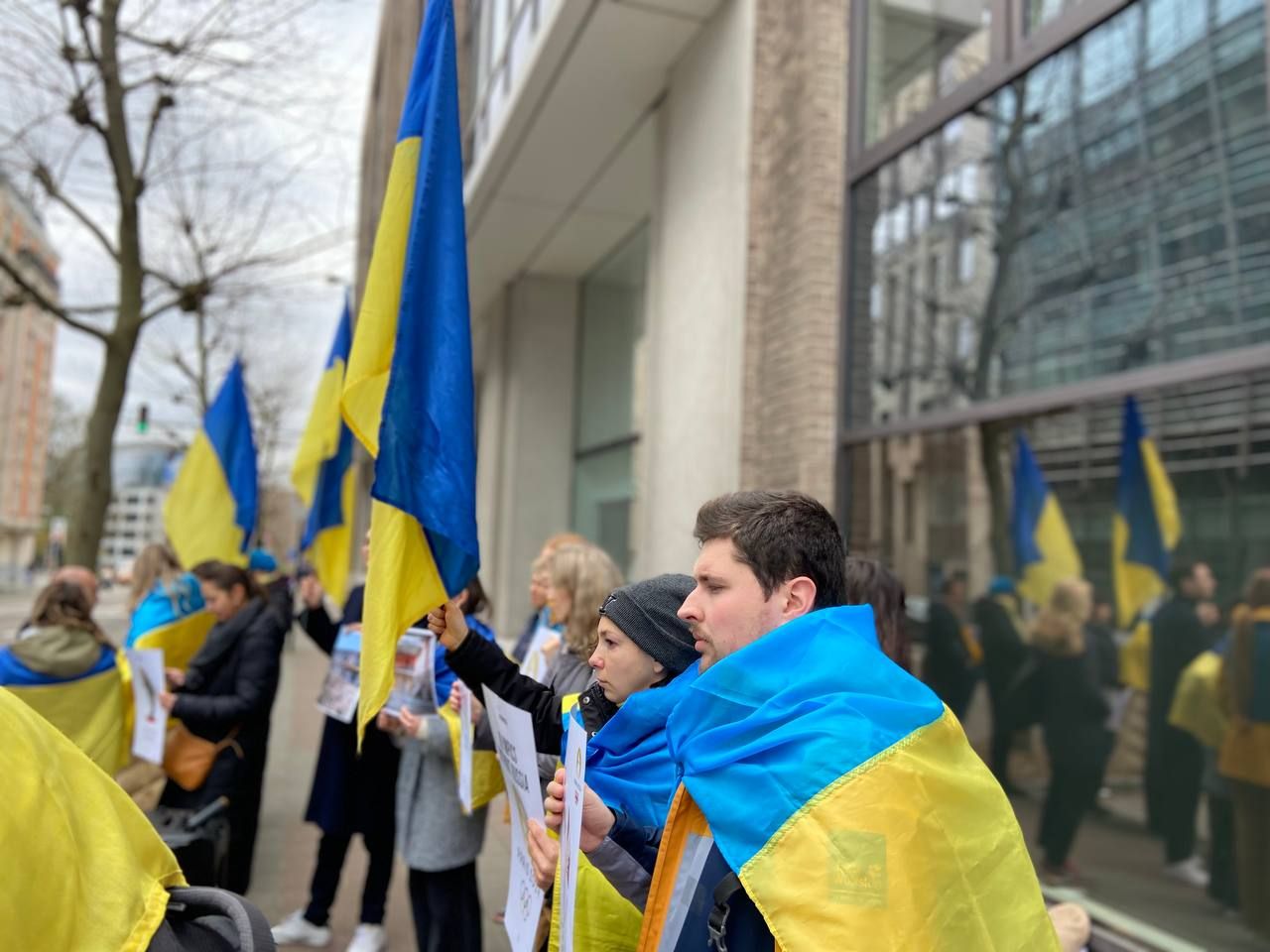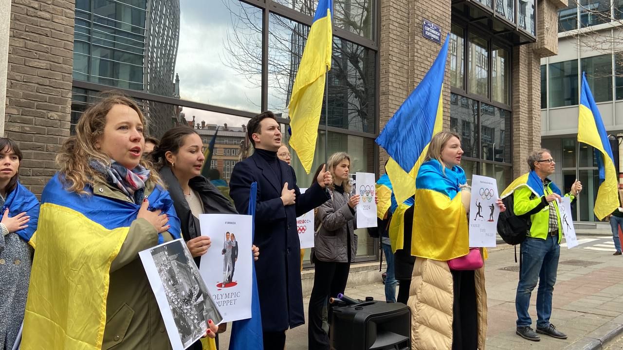 Украинцы во время митинга под зданием Представительства Европейских олимпийских комитетов в ЕС / фото 24 Канала