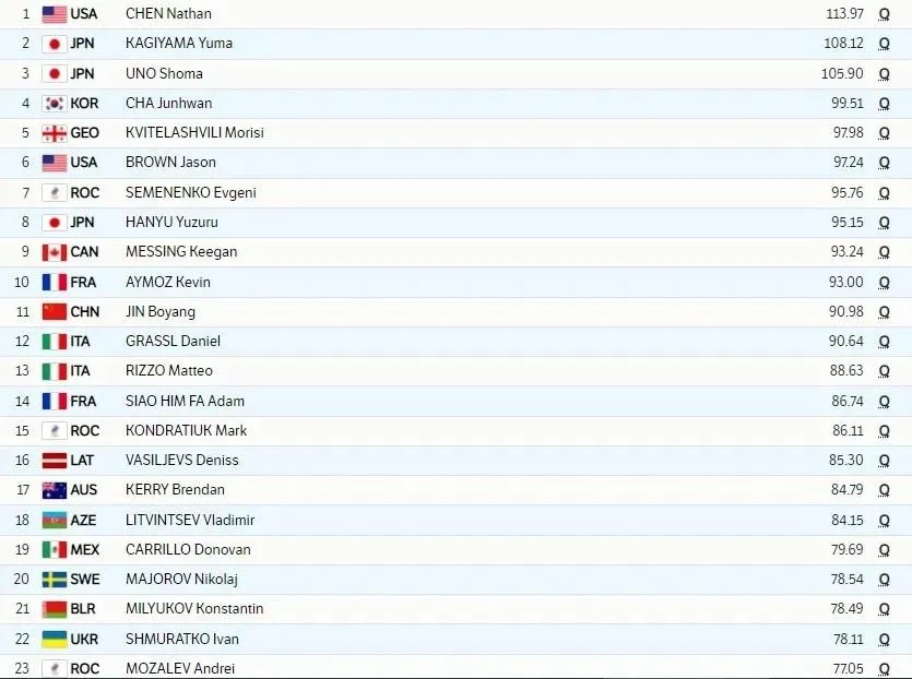Выиграл короткую программу американский фигурист Нейтан Чен с результатом 113,97 балла – это новый мировой рекорд.
