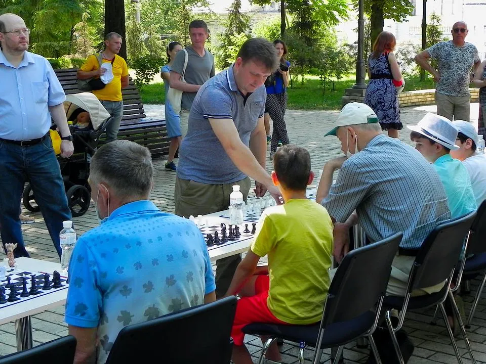 Владимир Баклан дает сеанс одновременной на День шахмат (20 июля 2019 года)