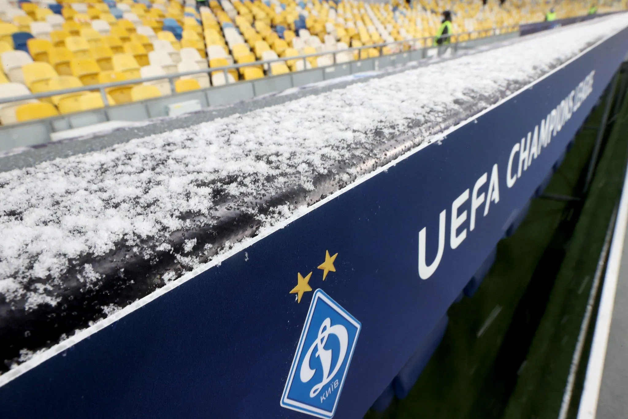 За час до матча поле в Киеве засыпает снегом, но он быстро тает, поэтому проведению встречи ничего не угрожает.
