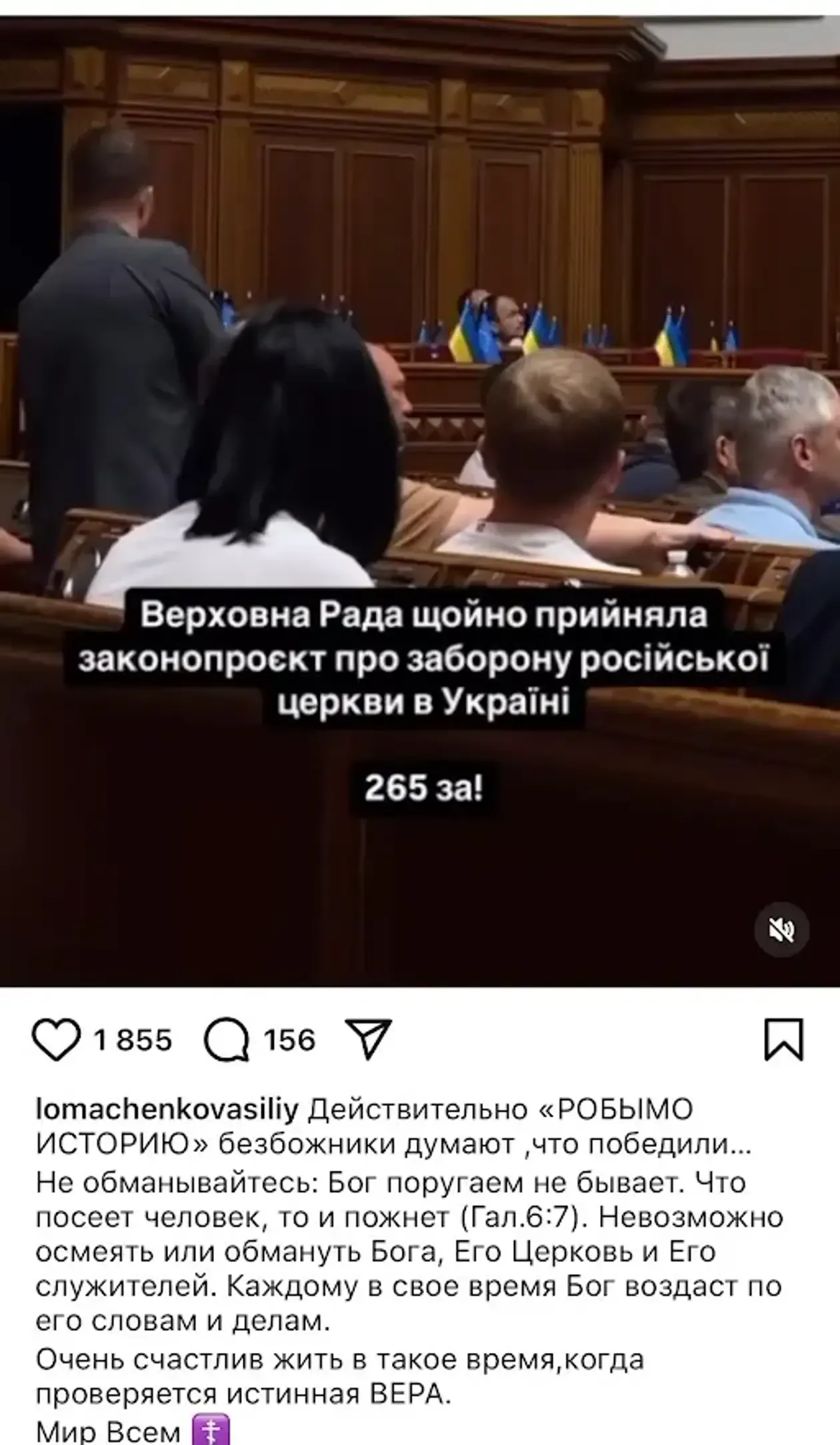 Напомним, вчера, 19 августа, Василий Ломаченко в своем Инстаграме выложил пост с "угрозами" для тех, кто поддержит запрет УПЦ МП в Украине.