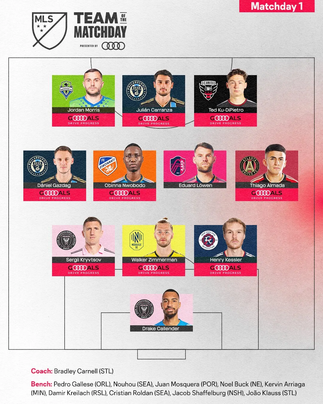 За підсумками першого туру МЛС визначила символічну збірну тижня, до якої потрапив гравець збірної України. Також до одинадцятки найкращих потрапив одноклубник Сергія воротар Дрейк Каллендер.