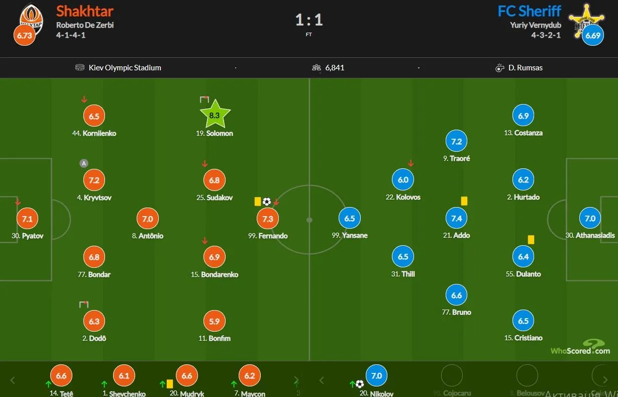 Шахтар – Шериф: оцінки гравців / Скриншот із WhoScored
