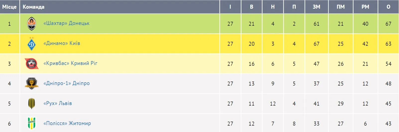 Турнірна таблиця чемпіонату України / скріншот з сайту УПЛ